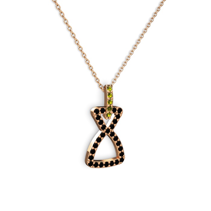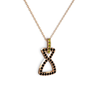 Peridot ve siyah zirkon 18 ayar rose altın kolye (40 cm rose altın rolo zincir)