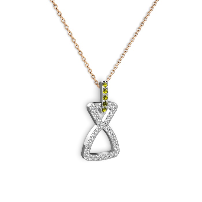 Peridot ve swarovski 14 ayar beyaz altın kolye (40 cm rose altın rolo zincir)