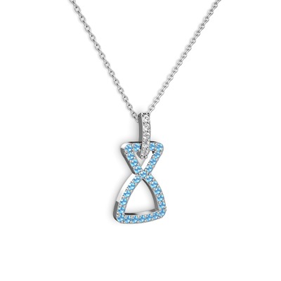 Pırlanta ve akuamarin 8 ayar beyaz altın kolye (0.55 karat, 40 cm beyaz altın rolo zincir)