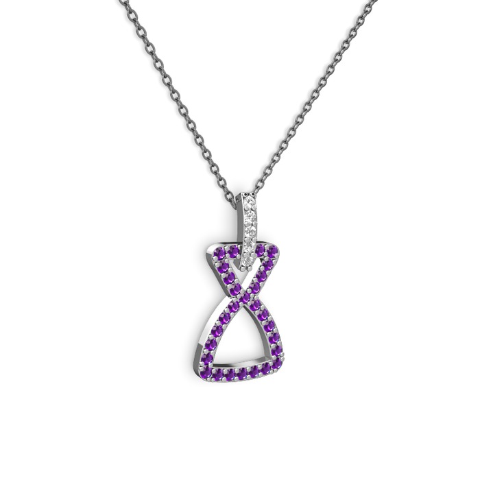 Pırlanta ve ametist 8 ayar beyaz altın kolye (0.55 karat, 40 cm gümüş rolo zincir)
