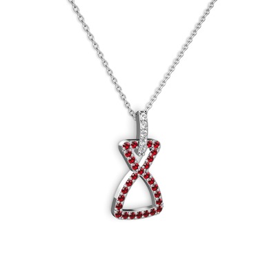 Pırlanta ve garnet 14 ayar beyaz altın kolye (0.55 karat, 40 cm beyaz altın rolo zincir)