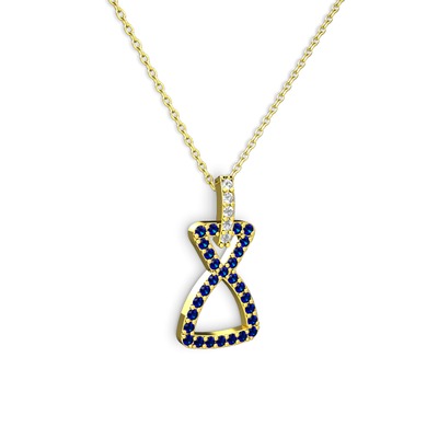 Pırlanta ve lab safir 925 ayar altın kaplama gümüş kolye (0.55 karat, 40 cm altın rolo zincir)