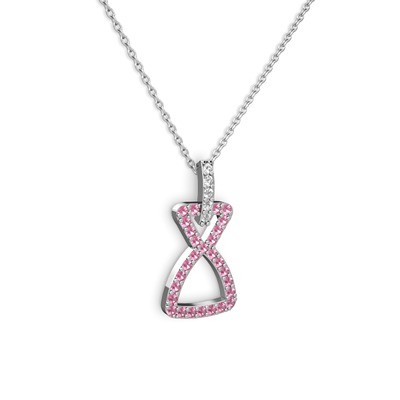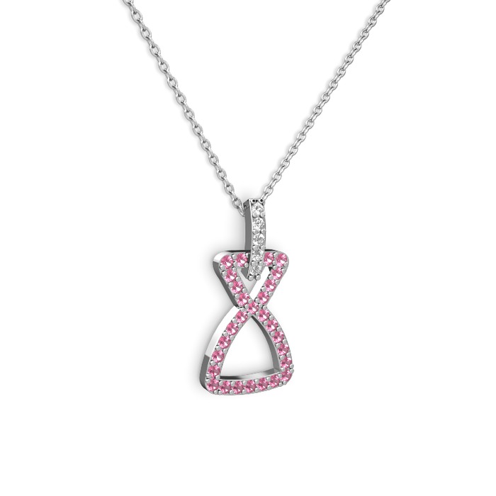 Pırlanta ve pembe kuvars 8 ayar beyaz altın kolye (0.55 karat, 40 cm gümüş rolo zincir)