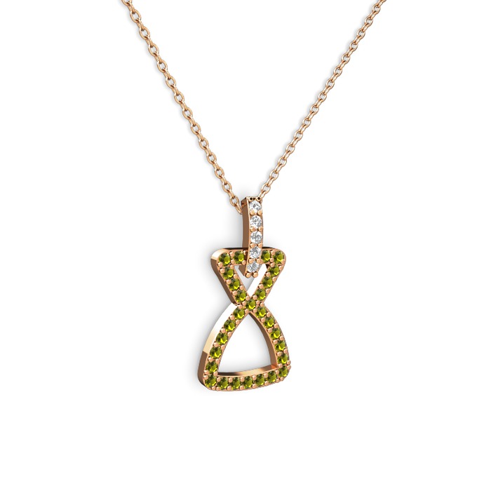 Pırlanta ve peridot 8 ayar rose altın kolye (0.55 karat, 40 cm gümüş rolo zincir)