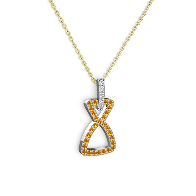 Pırlanta ve sitrin 14 ayar beyaz altın kolye (0.55 karat, 40 cm altın rolo zincir)