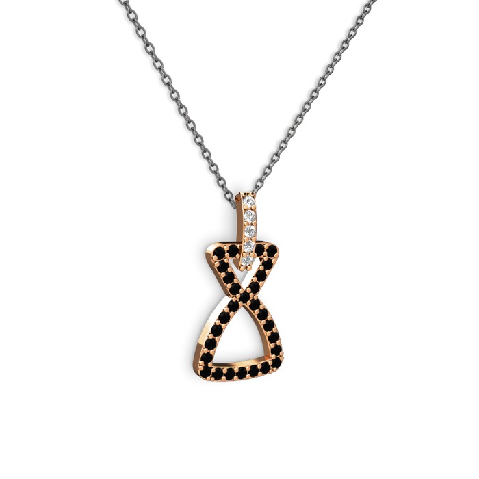 Pırlanta ve siyah zirkon 8 ayar rose altın kolye (0.55 karat, 40 cm gümüş rolo zincir)