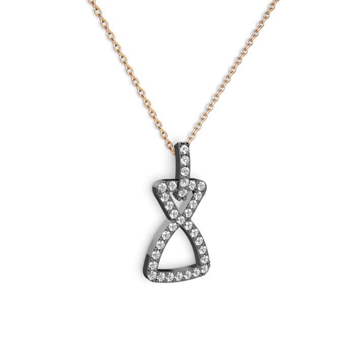 Pırlanta ve swarovski 925 ayar siyah rodyum kaplama gümüş kolye (0.55 karat, 40 cm gümüş rolo zincir)