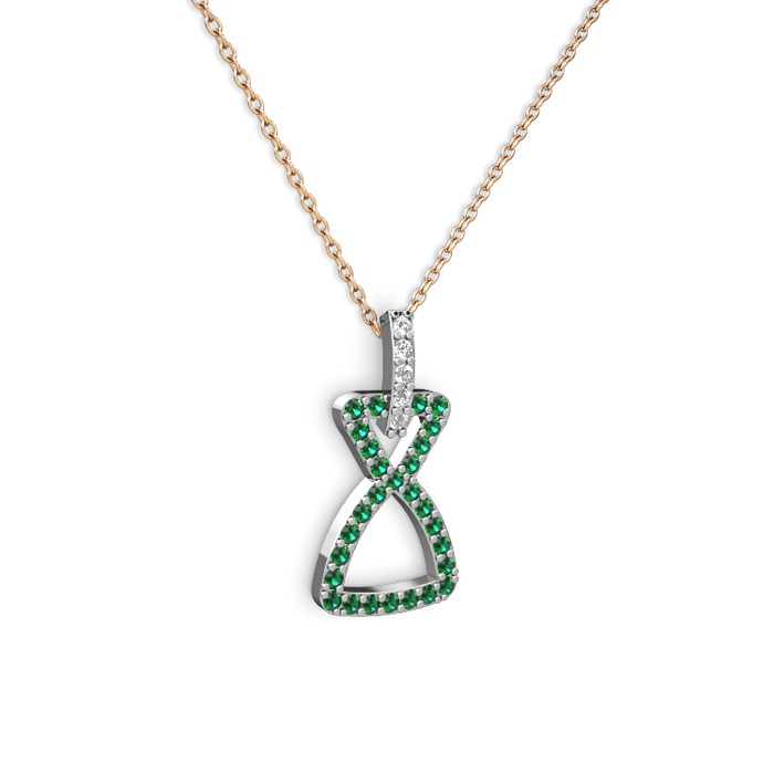 Pırlanta ve yeşil kuvars 14 ayar beyaz altın kolye (0.55 karat, 40 cm rose altın rolo zincir)