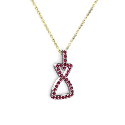 Rodolit garnet 14 ayar beyaz altın kolye (40 cm gümüş rolo zincir)