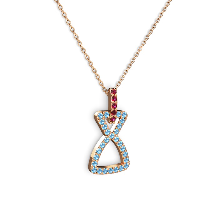 Rodolit garnet ve akuamarin 18 ayar rose altın kolye (40 cm rose altın rolo zincir)