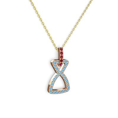 Rodolit garnet ve akuamarin 8 ayar rose altın kolye (40 cm altın rolo zincir)