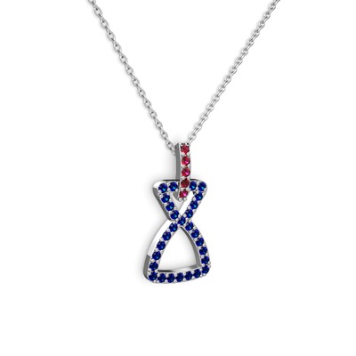 Rodolit garnet ve lab safir 14 ayar beyaz altın kolye (40 cm beyaz altın rolo zincir)