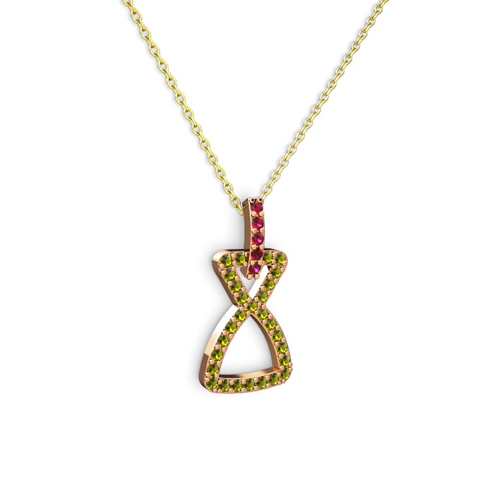 Rodolit garnet ve peridot 14 ayar rose altın kolye (40 cm gümüş rolo zincir)