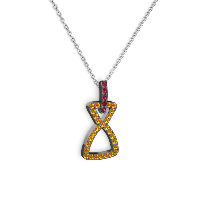 Rodolit garnet ve sitrin 925 ayar siyah rodyum kaplama gümüş kolye (40 cm beyaz altın rolo zincir)