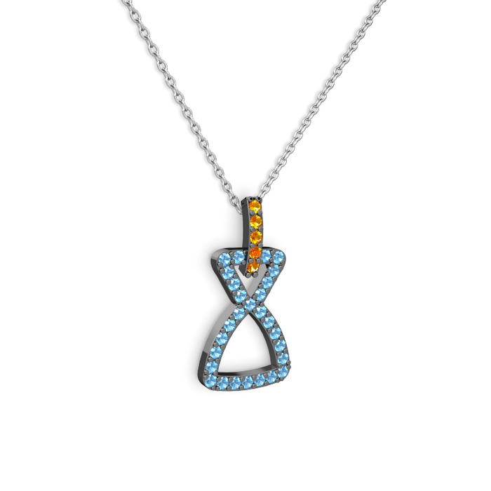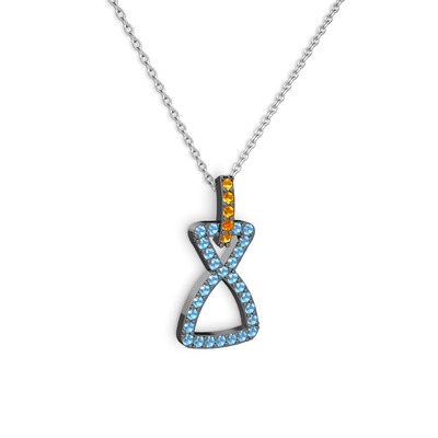 Sitrin ve akuamarin 925 ayar siyah rodyum kaplama gümüş kolye (40 cm gümüş rolo zincir)