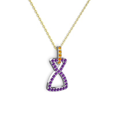 Sitrin ve ametist 14 ayar beyaz altın kolye (40 cm altın rolo zincir)