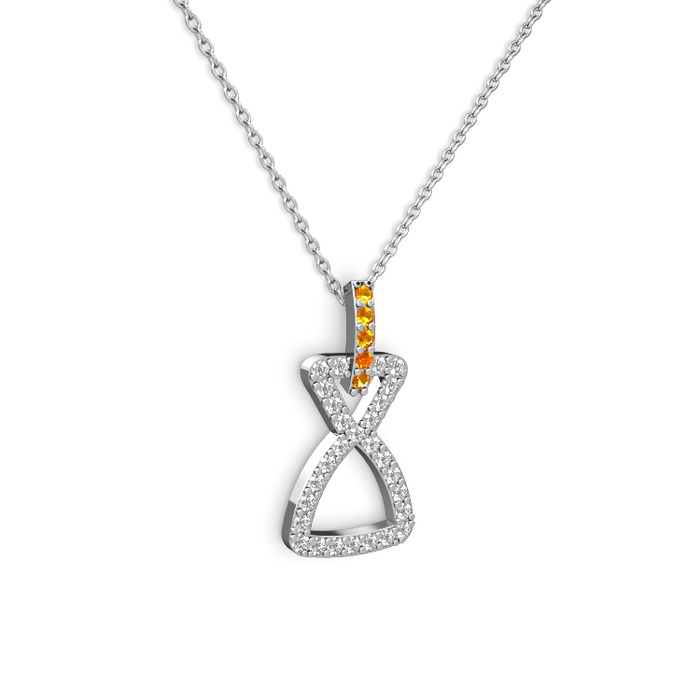 Sitrin ve beyaz zirkon 925 ayar gümüş kolye (40 cm beyaz altın rolo zincir)