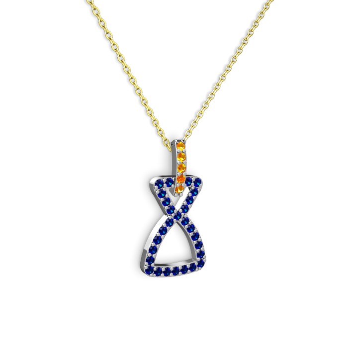 Sitrin ve lab safir 18 ayar beyaz altın kolye (40 cm gümüş rolo zincir)