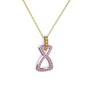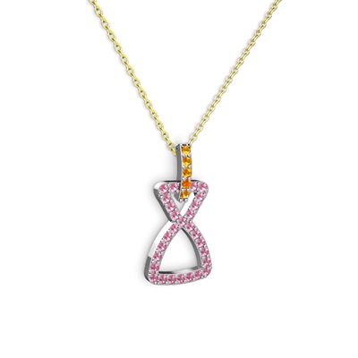 Sitrin ve pembe kuvars 14 ayar beyaz altın kolye (40 cm gümüş rolo zincir)
