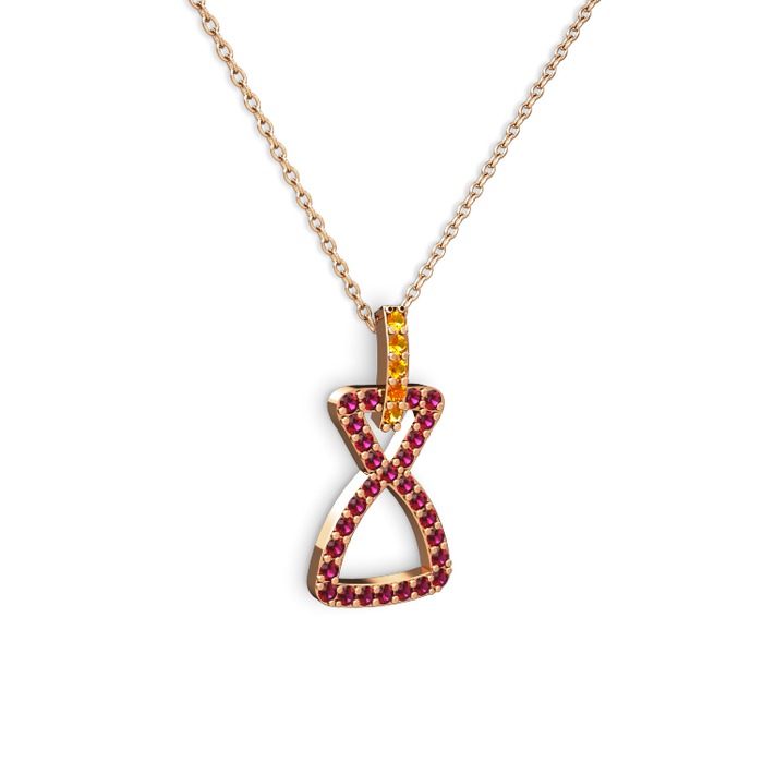 Sitrin ve rodolit garnet 8 ayar rose altın kolye (40 cm rose altın rolo zincir)