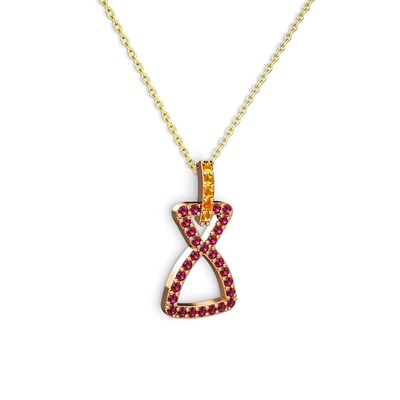 Sitrin ve rodolit garnet 925 ayar rose altın kaplama gümüş kolye (40 cm gümüş rolo zincir)