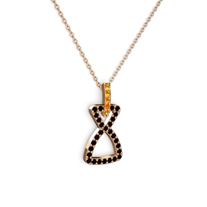 Sitrin ve siyah zirkon 925 ayar rose altın kaplama gümüş kolye (40 cm rose altın rolo zincir)