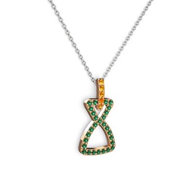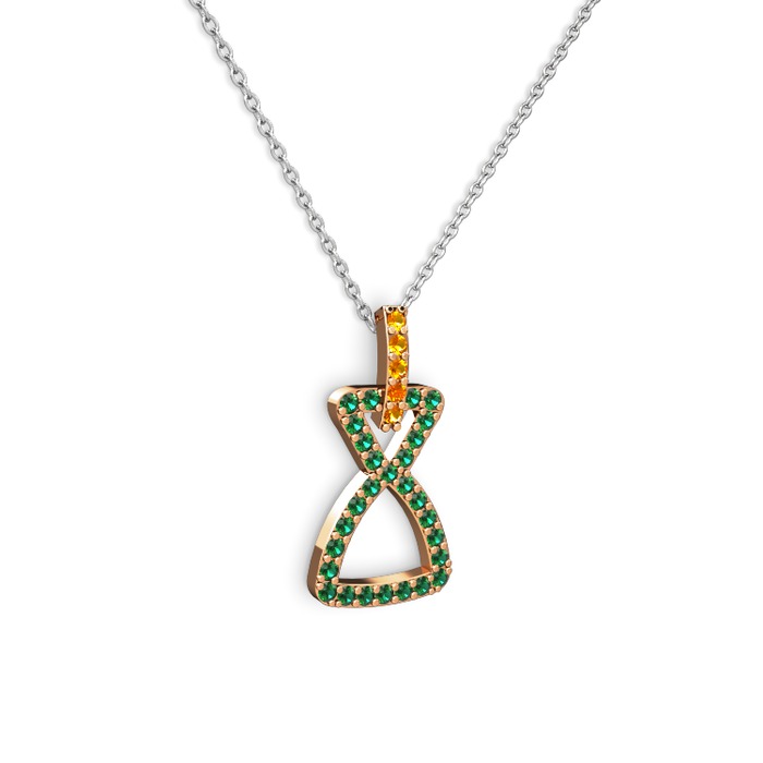Sitrin ve yeşil kuvars 8 ayar rose altın kolye (40 cm beyaz altın rolo zincir)