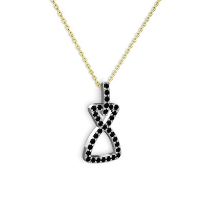 Siyah zirkon 14 ayar beyaz altın kolye (40 cm altın rolo zincir)