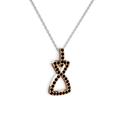 Siyah zirkon 8 ayar rose altın kolye (40 cm beyaz altın rolo zincir)