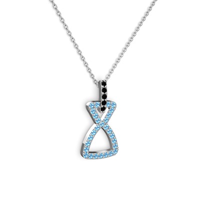Siyah zirkon ve akuamarin 18 ayar beyaz altın kolye (40 cm beyaz altın rolo zincir)