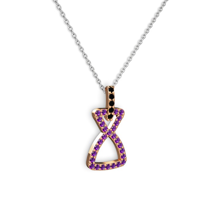 Siyah zirkon ve ametist 8 ayar rose altın kolye (40 cm beyaz altın rolo zincir)