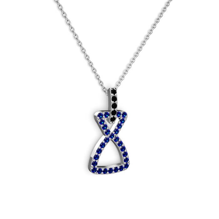Siyah zirkon ve lab safir 14 ayar beyaz altın kolye (40 cm beyaz altın rolo zincir)