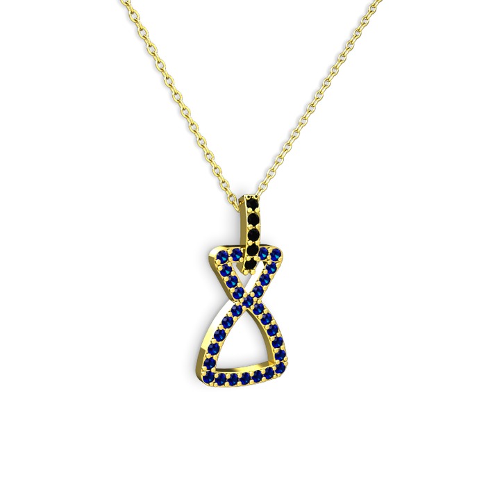 Siyah zirkon ve lab safir 18 ayar altın kolye (40 cm altın rolo zincir)
