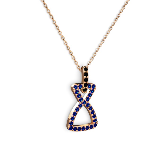 Siyah zirkon ve lab safir 18 ayar rose altın kolye (40 cm rose altın rolo zincir)