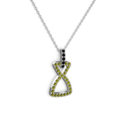 Siyah zirkon ve peridot 8 ayar beyaz altın kolye (40 cm gümüş rolo zincir)