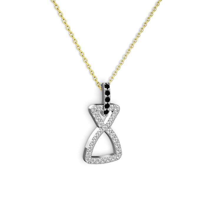 Siyah zirkon ve pırlanta 8 ayar beyaz altın kolye (0.374 karat, 40 cm altın rolo zincir)