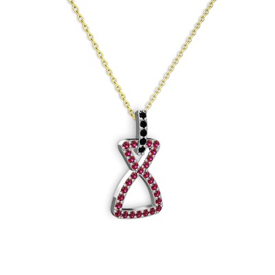 Siyah zirkon ve rodolit garnet 14 ayar beyaz altın kolye (40 cm altın rolo zincir)