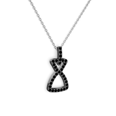 Siyah zirkon 925 ayar siyah rodyum kaplama gümüş kolye (40 cm beyaz altın rolo zincir)