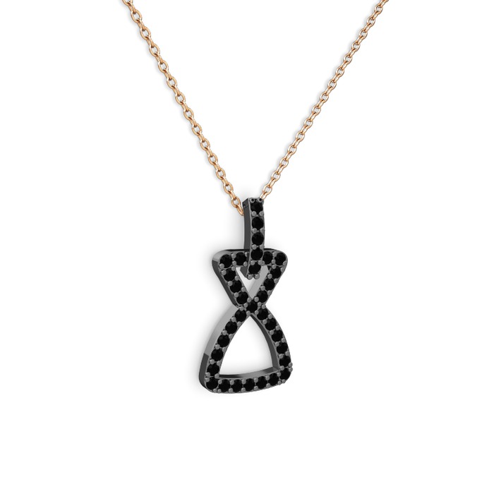 Siyah zirkon 925 ayar siyah rodyum kaplama gümüş kolye (40 cm rose altın rolo zincir)