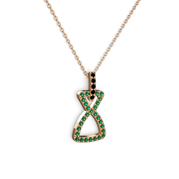 Siyah zirkon ve yeşil kuvars 8 ayar rose altın kolye (40 cm rose altın rolo zincir)