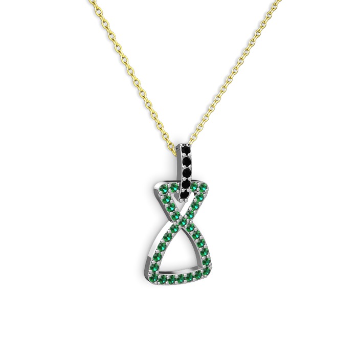 Siyah zirkon ve yeşil kuvars 925 ayar gümüş kolye (40 cm gümüş rolo zincir)