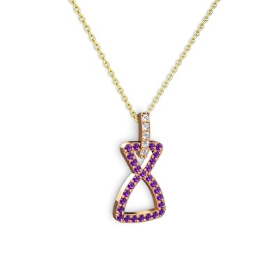 Swarovski ve ametist 8 ayar rose altın kolye (40 cm altın rolo zincir)