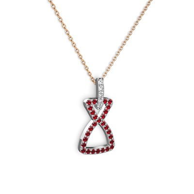 Swarovski ve garnet 18 ayar beyaz altın kolye (40 cm gümüş rolo zincir)