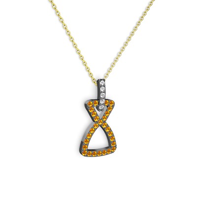 Swarovski ve sitrin 925 ayar siyah rodyum kaplama gümüş kolye (40 cm altın rolo zincir)