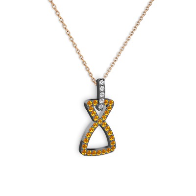 Swarovski ve sitrin 925 ayar siyah rodyum kaplama gümüş kolye (40 cm rose altın rolo zincir)