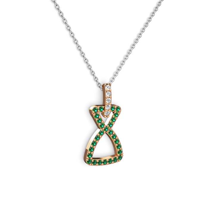 Swarovski ve yeşil kuvars 18 ayar rose altın kolye (40 cm beyaz altın rolo zincir)