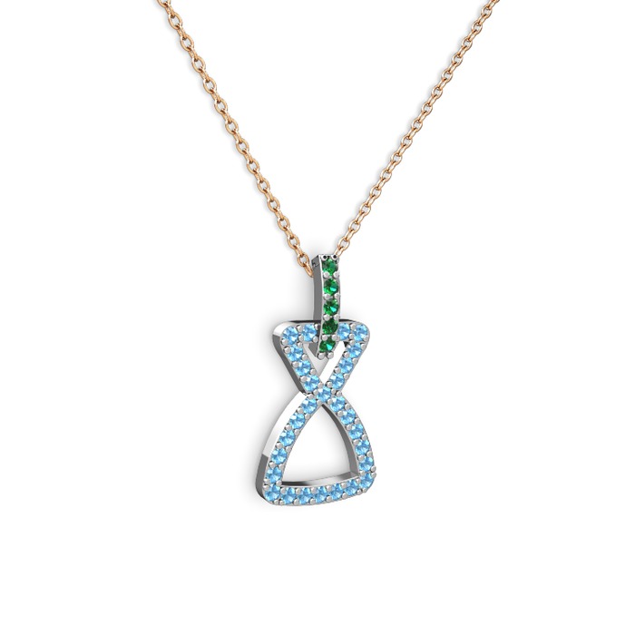 Yeşil kuvars ve akuamarin 14 ayar beyaz altın kolye (40 cm gümüş rolo zincir)