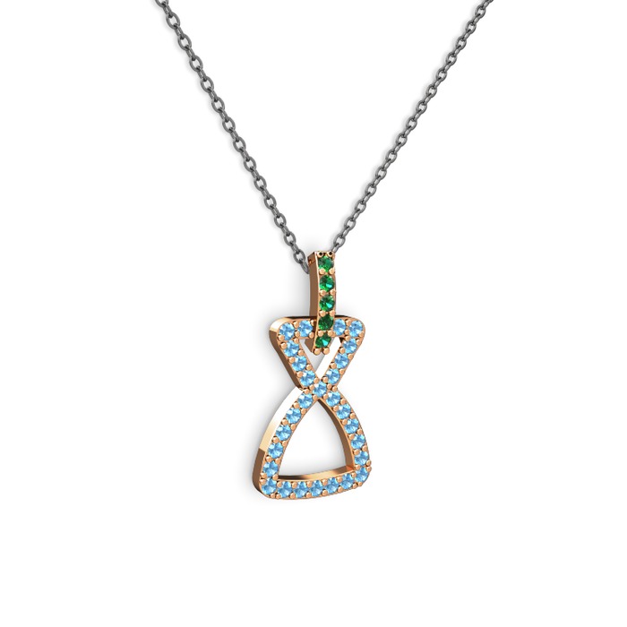 Yeşil kuvars ve akuamarin 14 ayar rose altın kolye (40 cm gümüş rolo zincir)