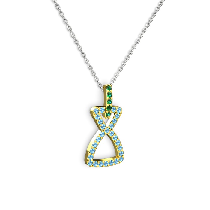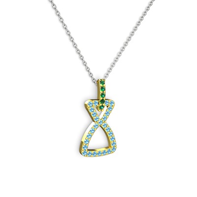 Yeşil kuvars ve akuamarin 18 ayar altın kolye (40 cm gümüş rolo zincir)