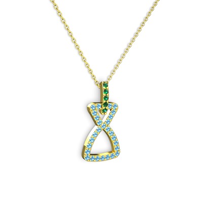 Yeşil kuvars ve akuamarin 925 ayar altın kaplama gümüş kolye (40 cm altın rolo zincir)